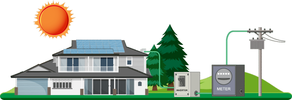Extra energy is exported to the grid, often earning feed-in tariff credits.